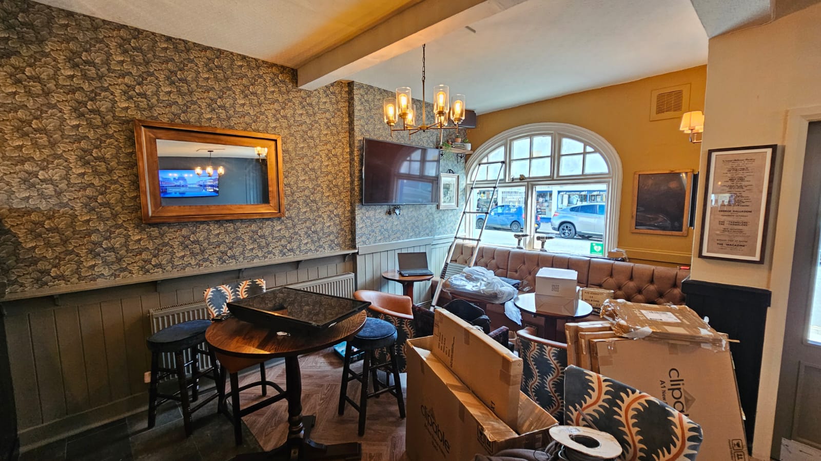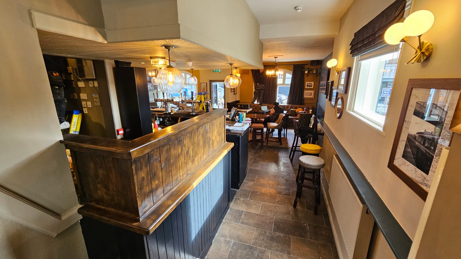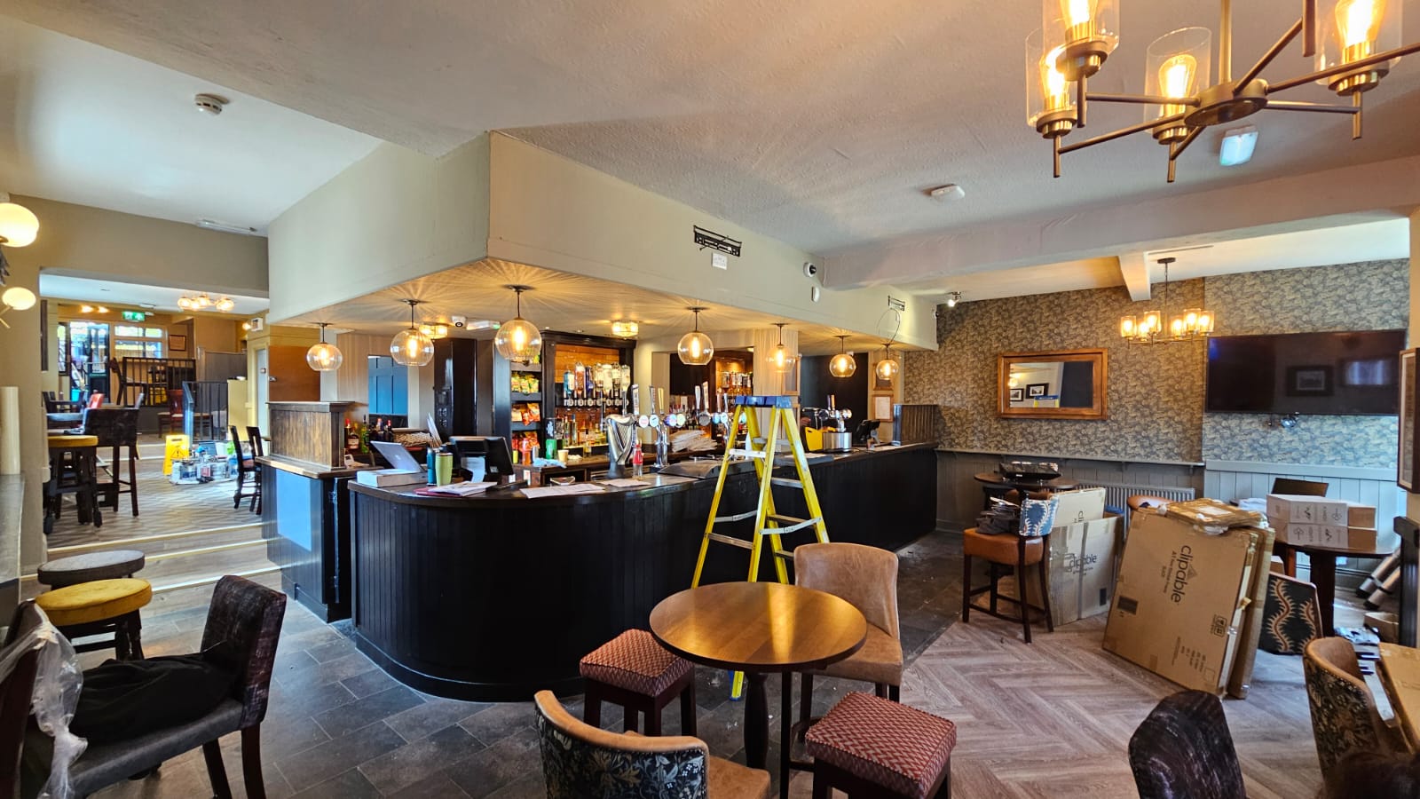 Full renovation of the pub interior, including bar, lounge, and dining spaces