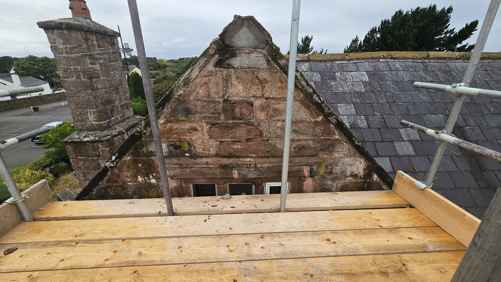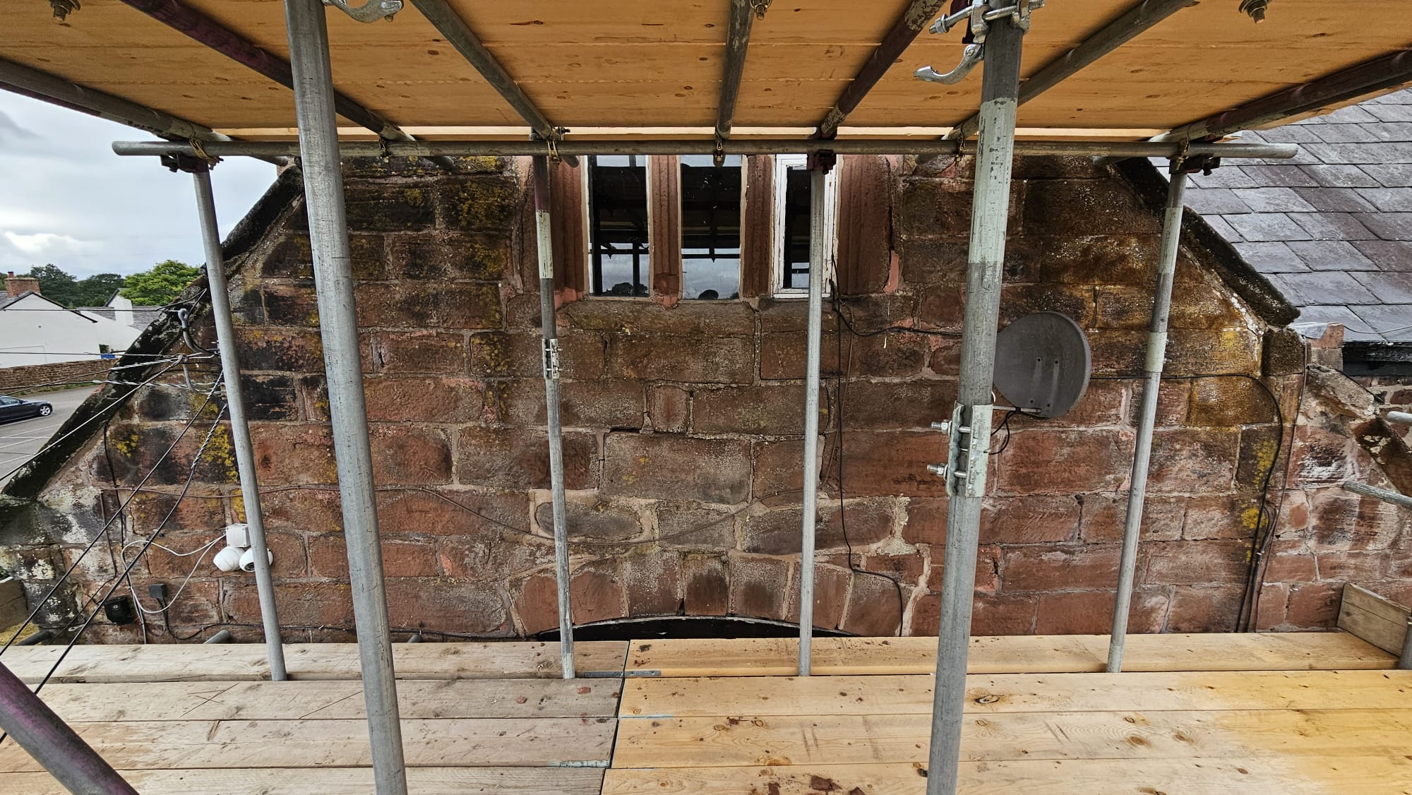 Undertaking structural repairs and specialist stone masonry works to the gable end of Pollards Inn.